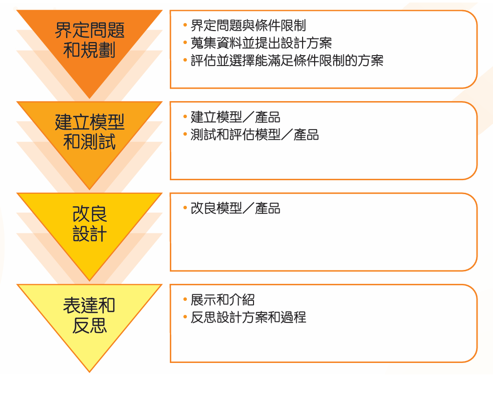 本課程強調讓學生通過設計模型/產品,了解科學與科技與日常生活的連繫,以及其為改善人類生活所帶來的好處,同時培養學生的創造力和創新思維。教師通過「界定問題和規劃」(Plan)、「建立模型和測試」(Do)、「改良設計」(Improve)和「表達和反思」(Review)四個步驟(PDIR),引導學生設計模型/產品︒
